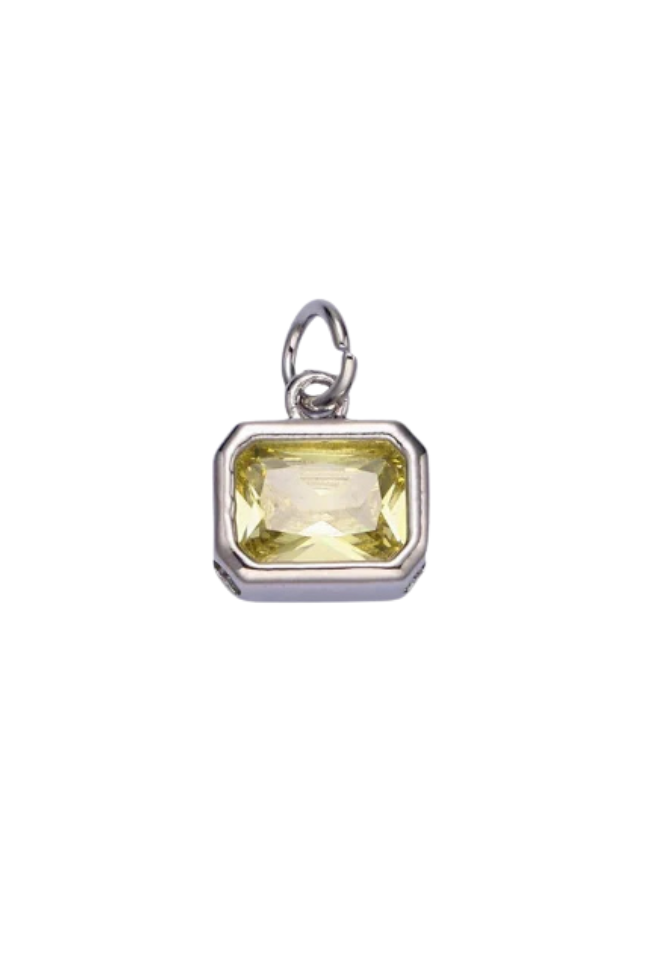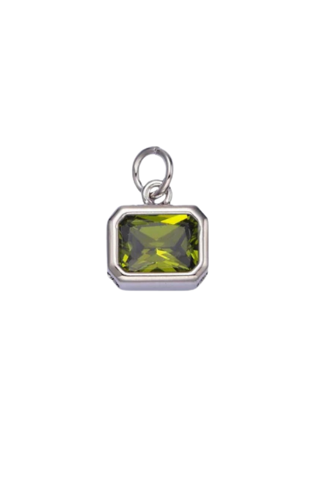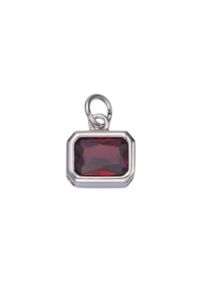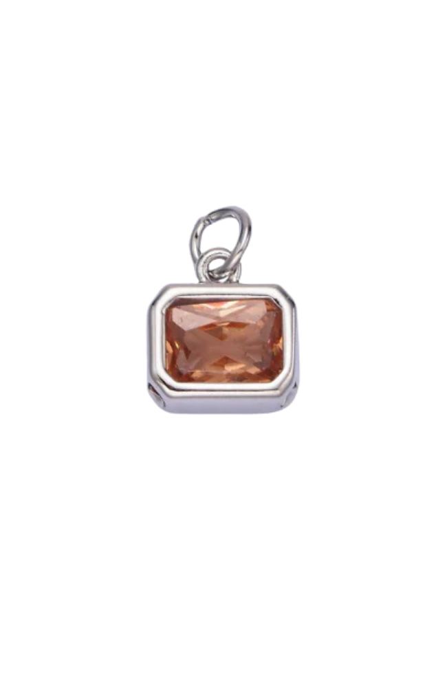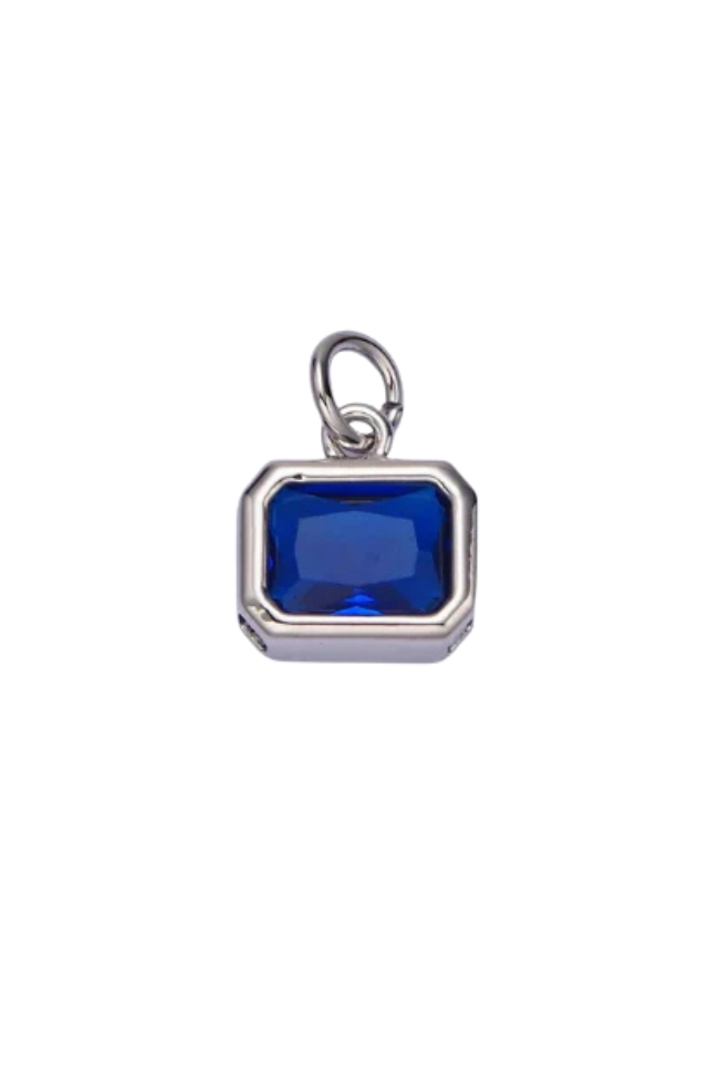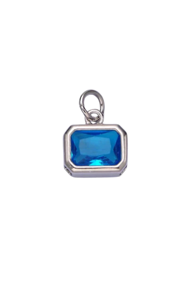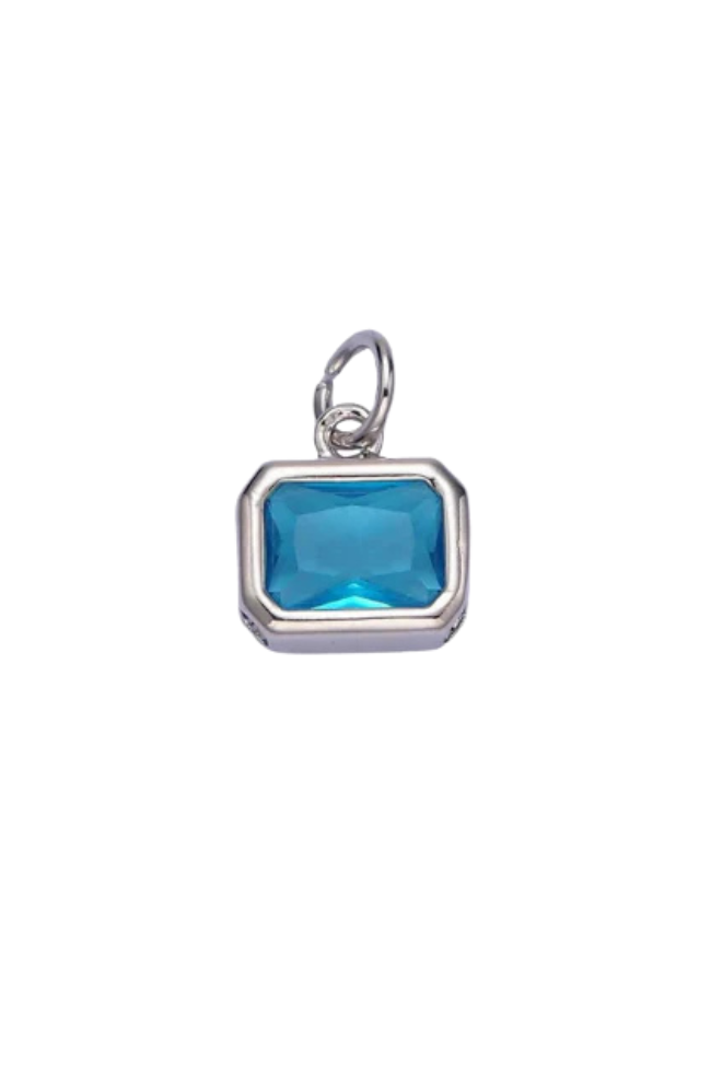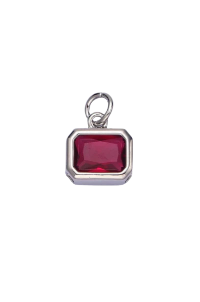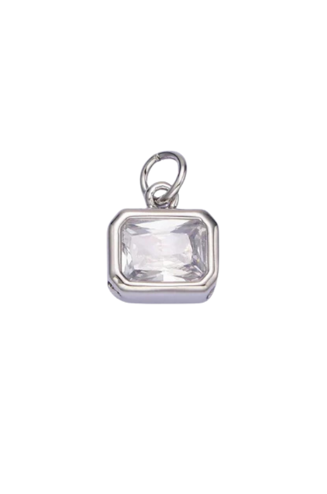 A silver bezel birthstone charm.