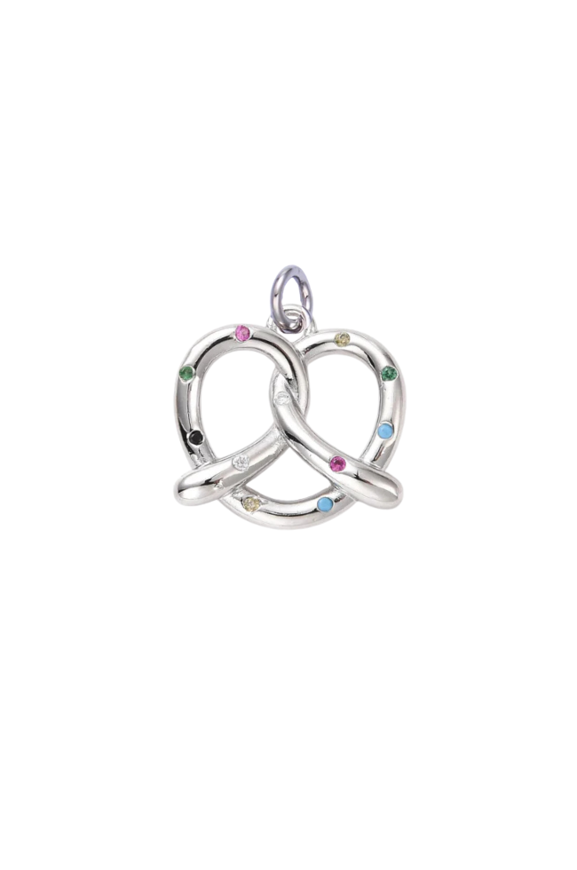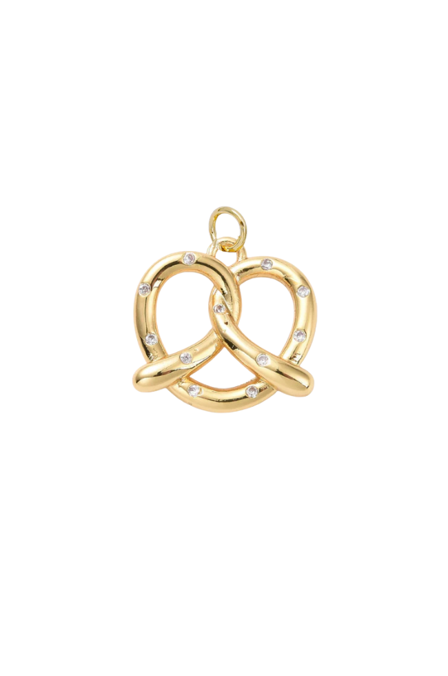 This pretzel charm is gold plated.