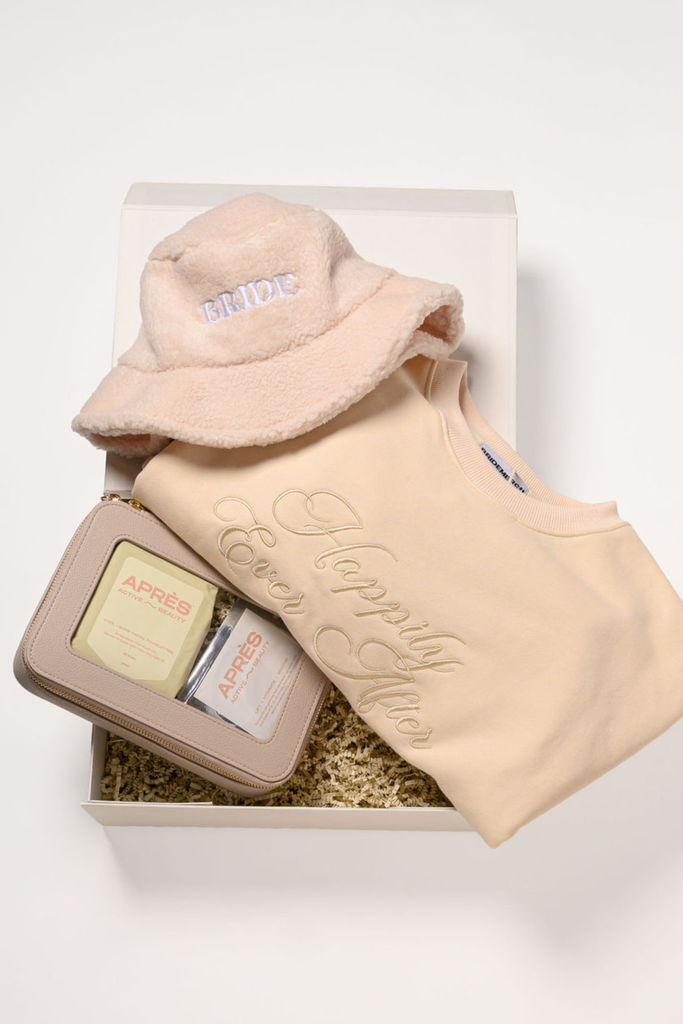 For the bride who’s glowing from “yes” to “I do,” the Happily Ever After Winter Box is a dreamy collection of elevated essentials designed for comfort, celebration, and self-care. Perfect for engagement season, wedding prep, or the honeymoon unwind, every piece blends modern luxury with bridal charm.