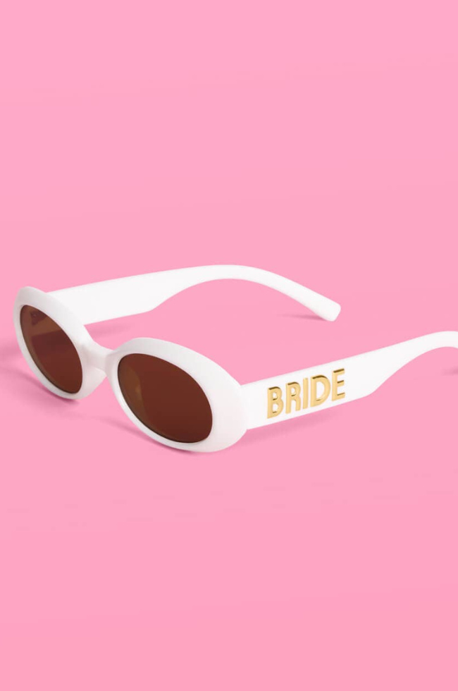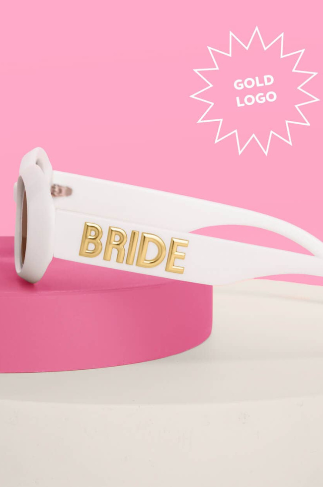 Ditch your plain sunglasses for these gold embossed Bride sunnies- you'll want to wear them for all of your wedding festivities!