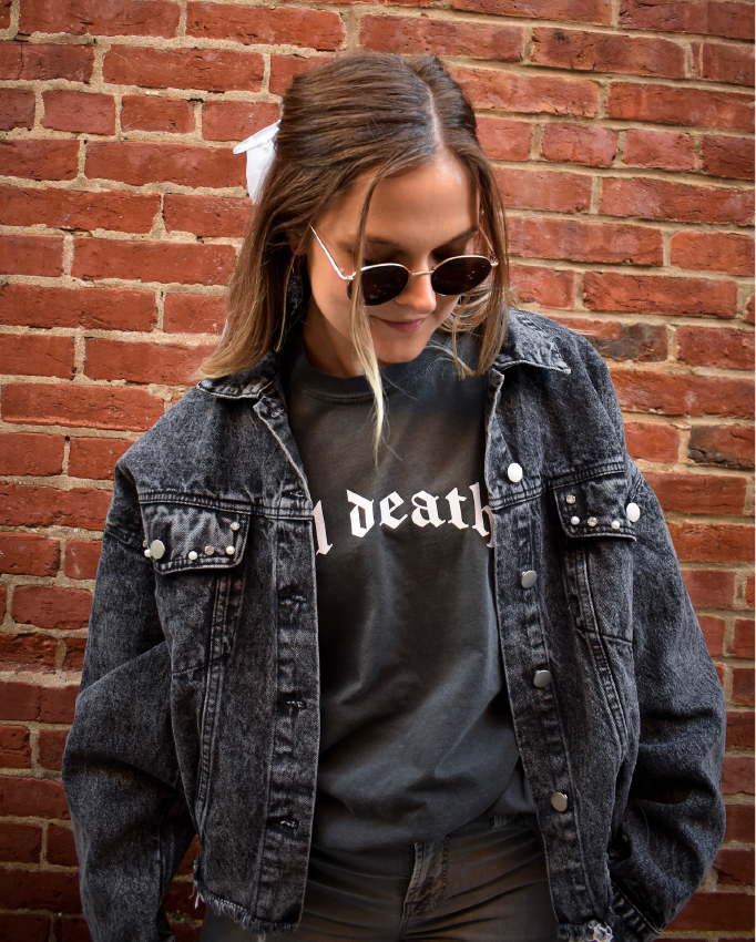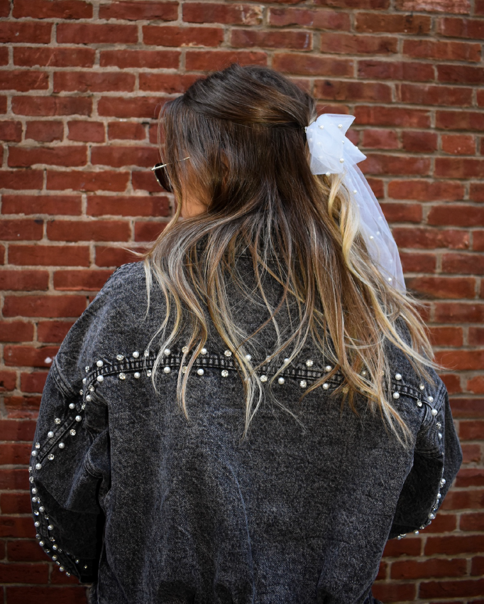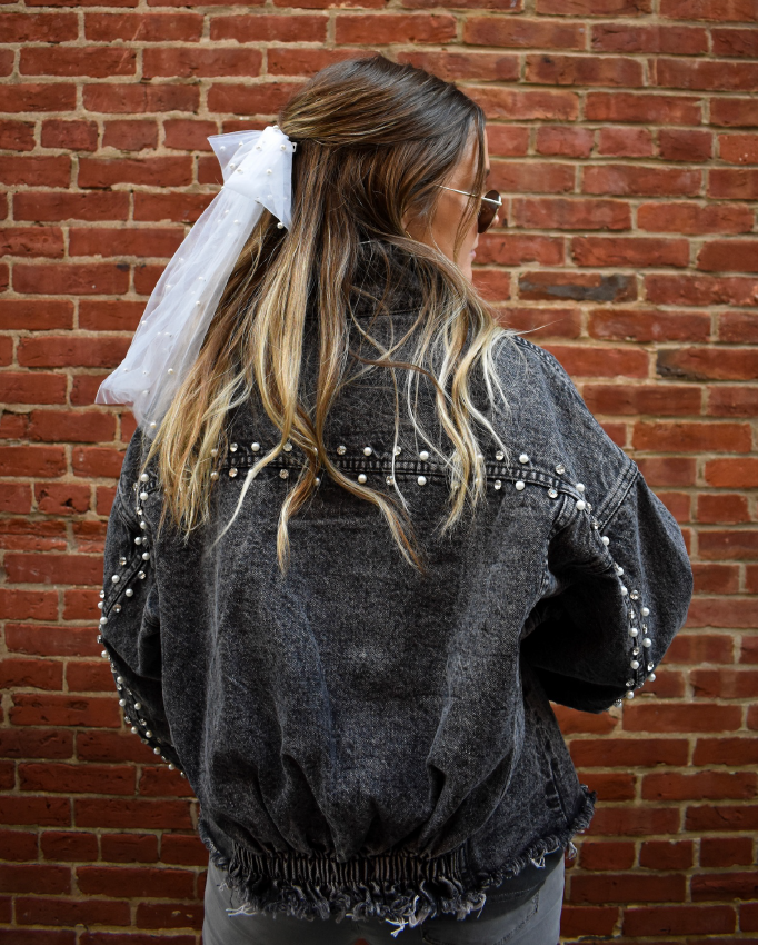This distressed denim jacket brings a little sparkle to any wardrobe with its unique beading! A perfect balance of cool and edgy, it's sure to rev up your style with a touch of punk-chic. Fits like a dream and will last you season after season! Don't miss out on this one-of-a-kind piece!