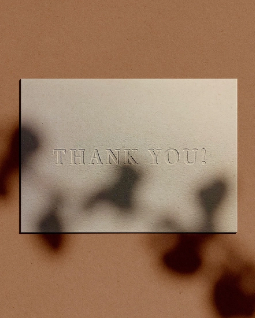 This card is made of 100% cotton paper, letterpressed blindly (without color) to create a clean, minimal, textured effect. This product is A2 in size (4.25x5.5”, 8.5x5.5" when opened), opening up to a blank card in order to include a personal message inside. Envelope made of 100% cotton paper, exact same color as card.