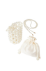 Adorned with a stunning array of lustrous pearls and intricate reticulated detailing, this handbag exudes elegance and refinement.