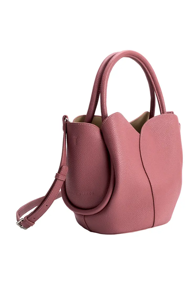 Recycled Vegan Leather; silver-tone hardware and snap hook closure.