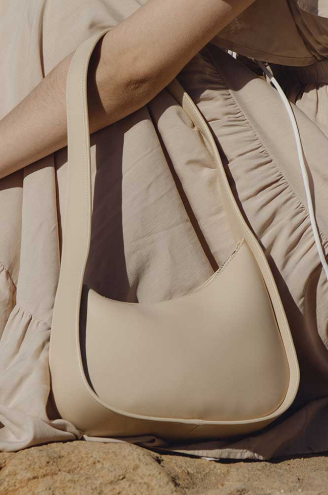 Recycled Vegan Leather; silver-tone hardware and zipper closure.
