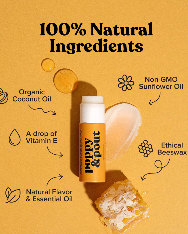 This Wild Honey Lip Balm is a soft and savory vibe for your lips! It’s subtle, sweet, and will hydrate your lips for hours. Every Poppy & Pout lip balm is made with 100% natural ingredients and hand-poured into eco-friendly cardboard tubes! Cruelty-Free.