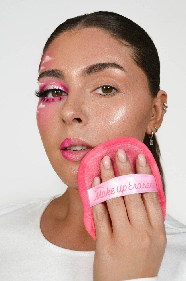 This patented MakeUp Eraser is water-activated and has cloud-soft fibers that gently & easily remove all makeup & sunscreen from pores. One side erases makeup & the other side exfoliates skin. Safe for lash extensions. Machine washable.