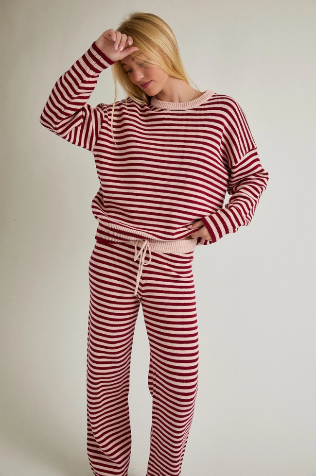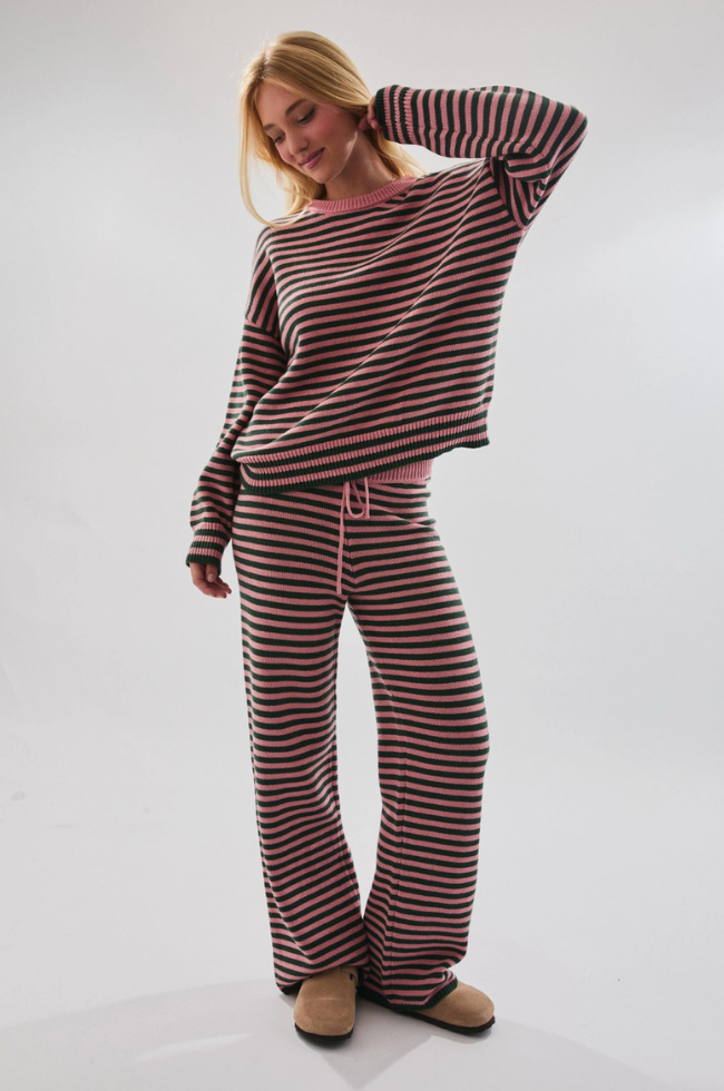 A comfy knit set available in two colors- burgundy+pink or green+pink. Super comfortable and soft set!