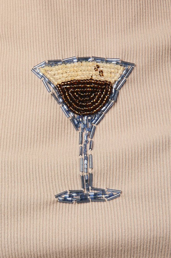 This playful top features soft, stretchy ribbed knit fabric and a sparkling beaded espresso martini detail.