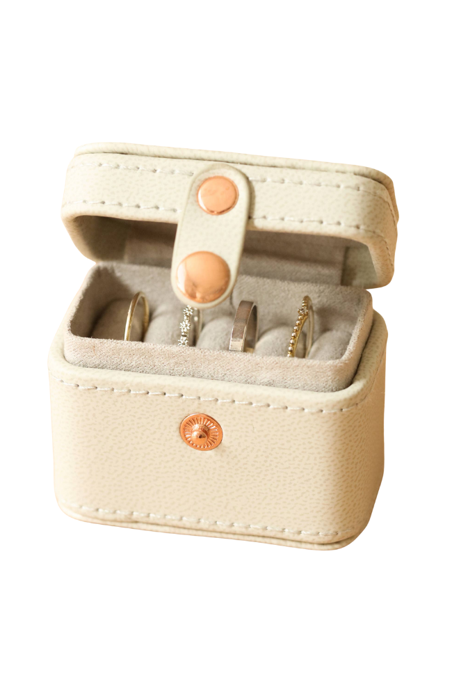 Vegan leather travel ring box with a velvet interior. Designed in Norwich, UK.