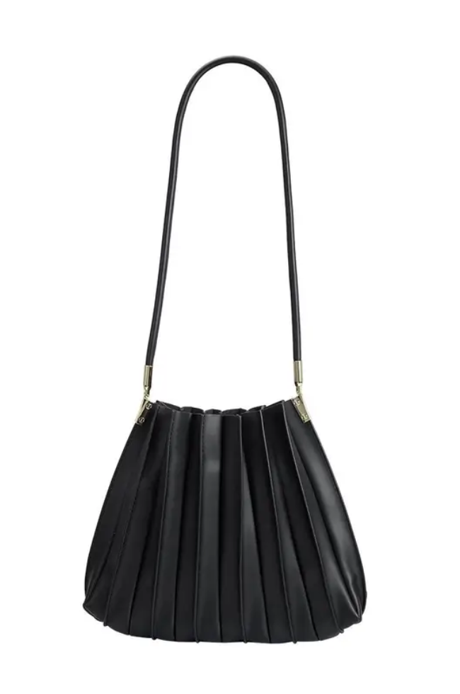 Premium Vegan Leather; gold-tone hardware and zipper closure.