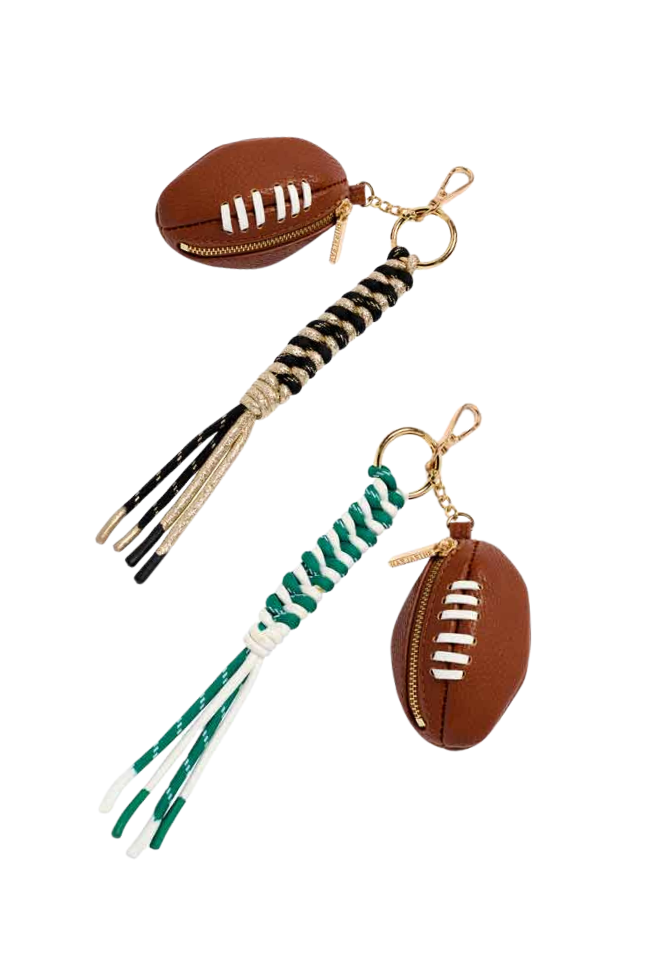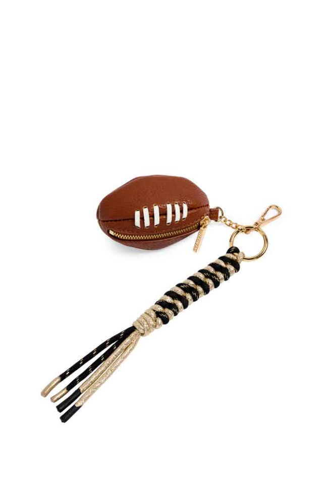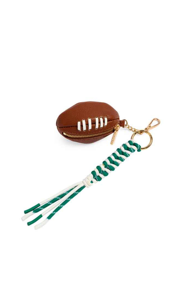 Cheer on your team and stash your cash in this 3D football coin purse bag charm.