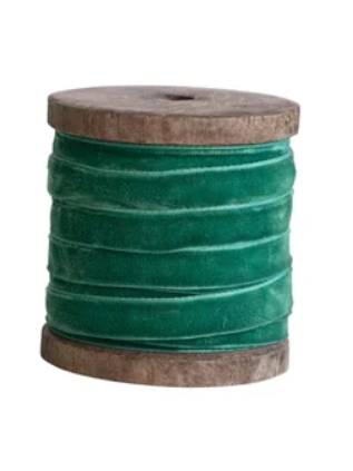 Make your decorating jolly and fun with this velvet ribbon on a wood spool! Its festive green color will perfectly match your holiday vibe, and the velvet fabric will add a light and luxurious touch to your decorations. (Plus, you'll never have to untangle a tangled mess again!)