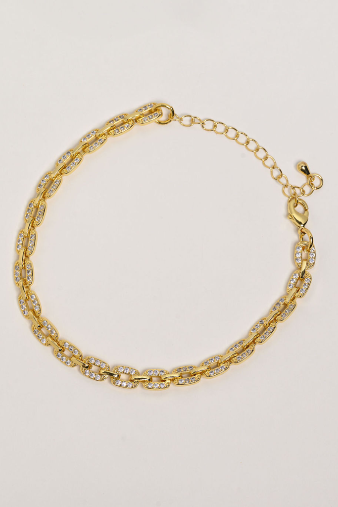 This Gold CZ Rectangle Link Bracelet is 18K Gold-Plated.
