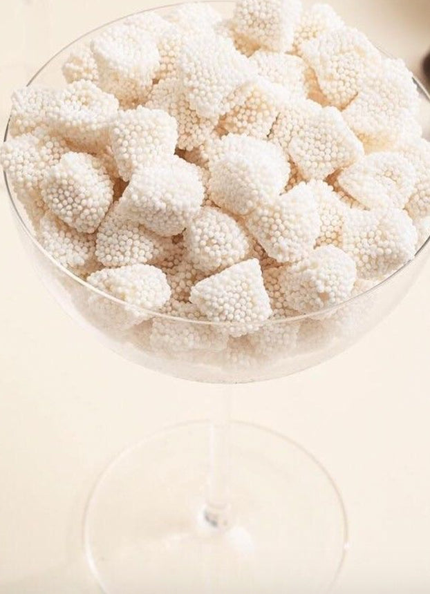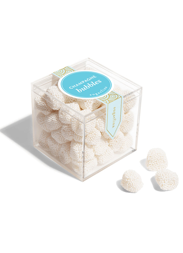 Delicate, sweet and chic, Champagne Bubbles are one of our all-time favorite gummies. Dressed up in tiny white nonpareils, each juicy little bite bursts with the flavors of the finest champagne. Sophisticated yet playful, you'll love each bubbly "sip." Champagne Bubbles are perfect for favors and gifts.