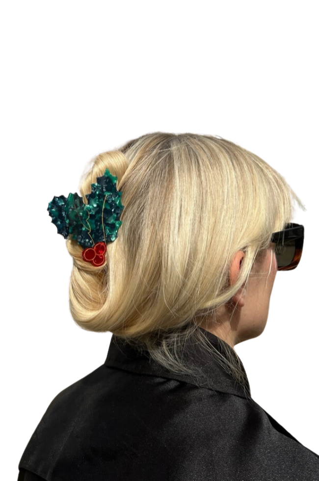 Our Mistletoe claw clip is hand painted by our Solar Eclipse artists. Carefully crafted from cellulose acetate - an eco-friendly, biodegradable material made from recycled wood pulp. The claw is double sided, for a perfect look from all angles!