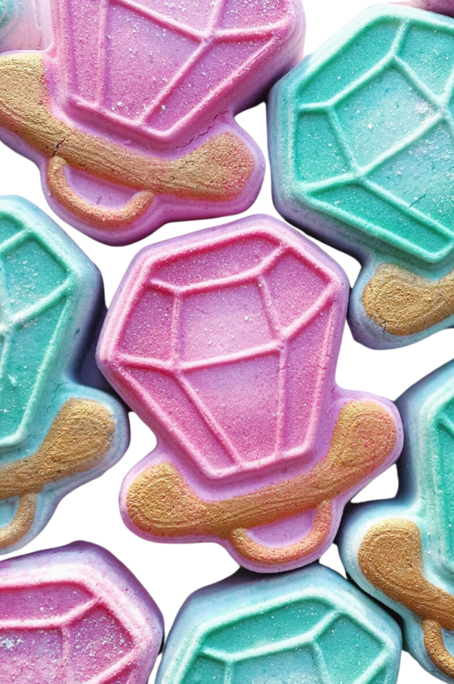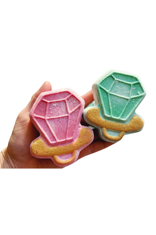 Treat yourself to this ring pop bath bomb, filled with fun colors and scented in lemon honey!