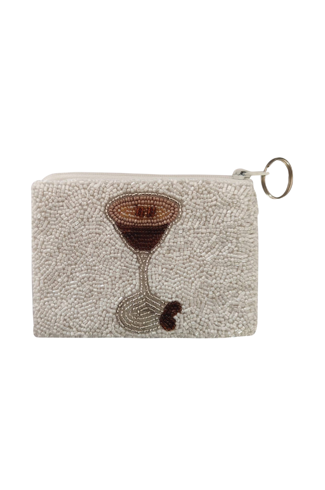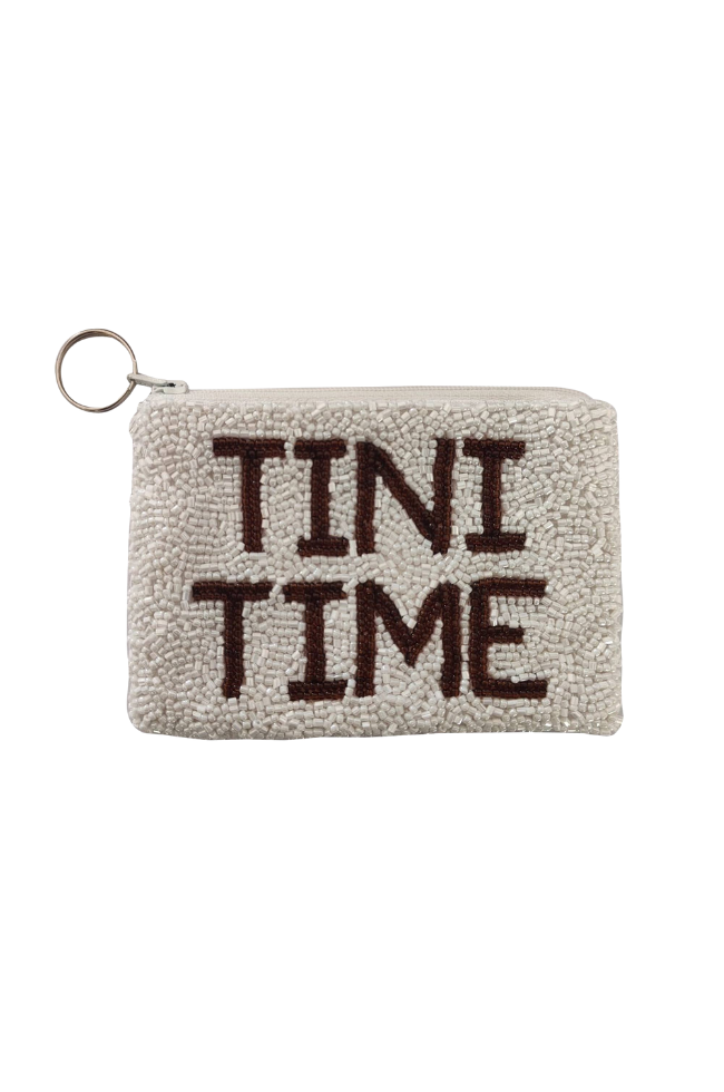 Hand beaded coin purse with a martini design on the front and "TINI TIME" on the back.