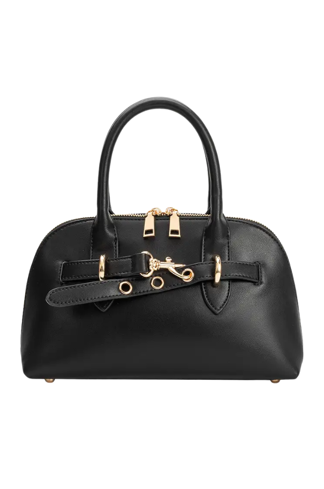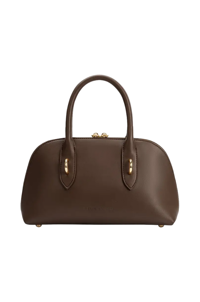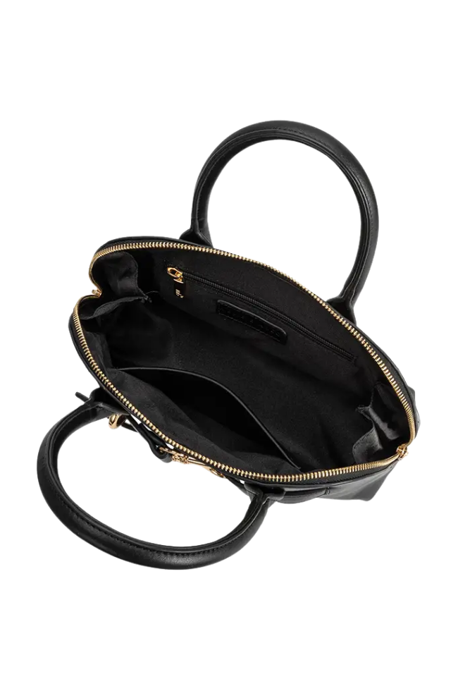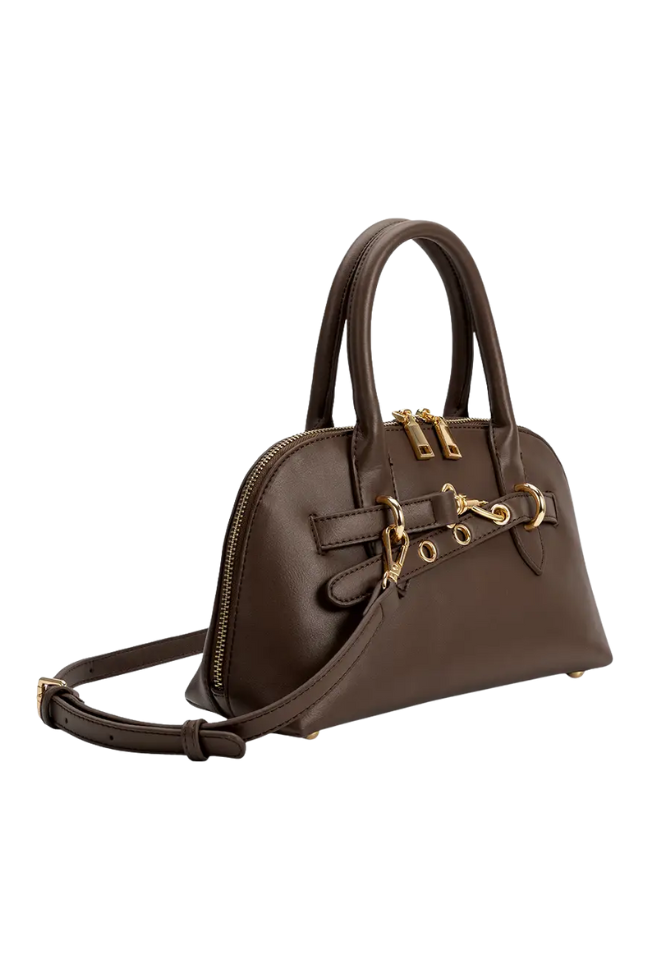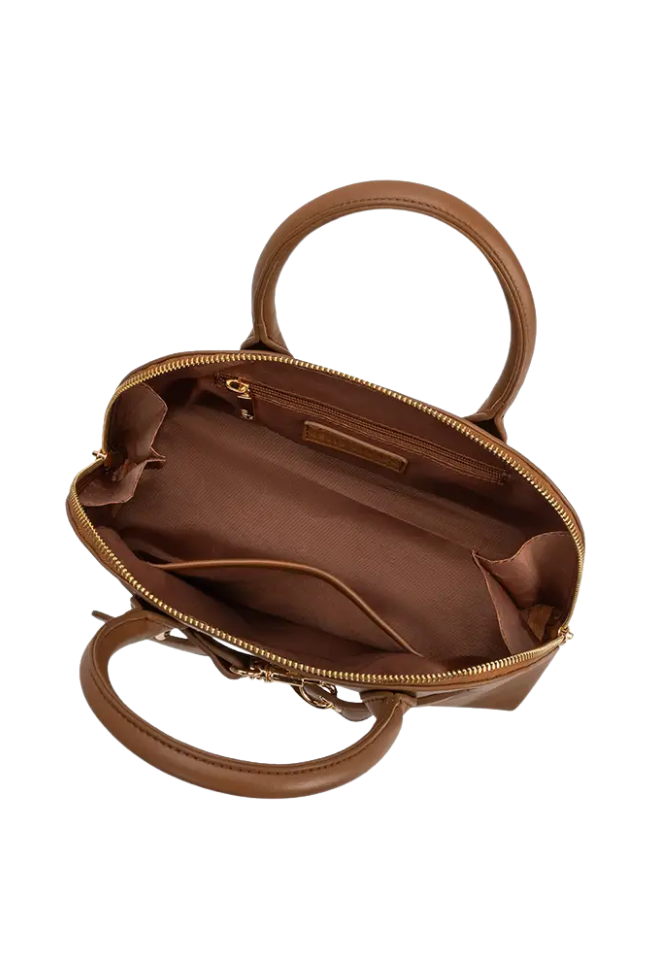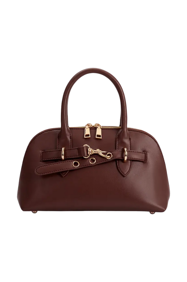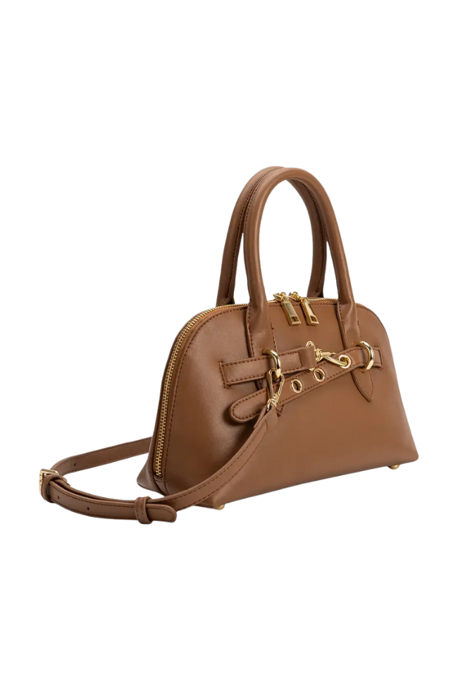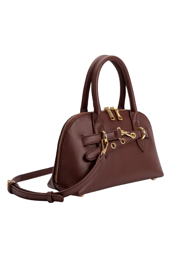 Recycled Vegan Leather; gold-tone hardware and zipper closure.